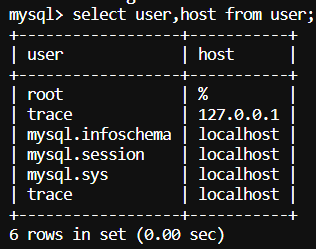 再次执行上面select查询语句就可以看到 root 的 host 已经变为 % 了
