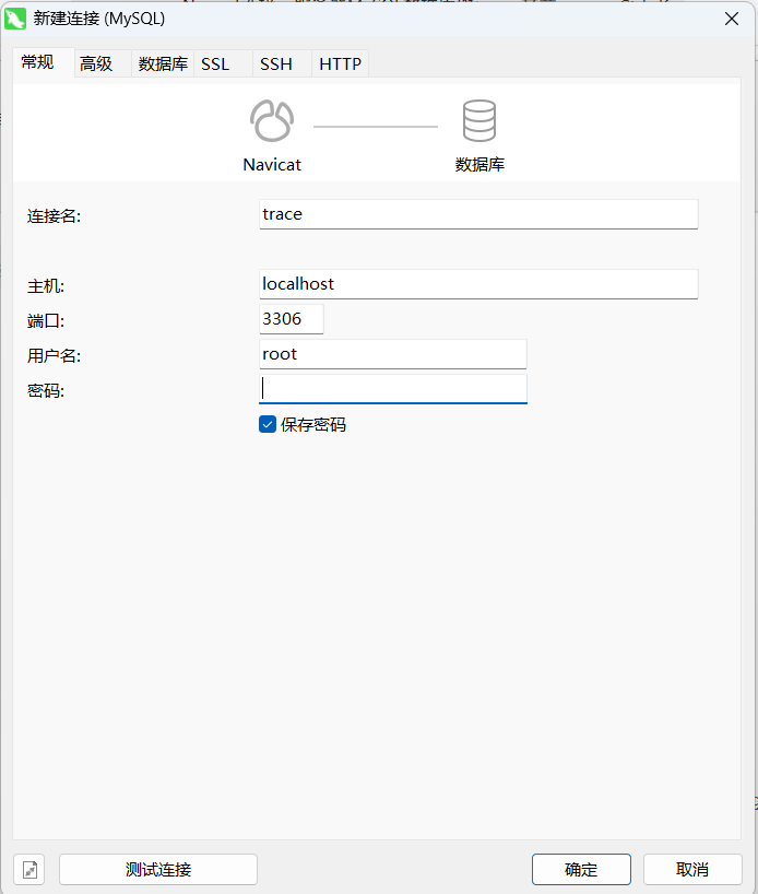 其中连接名是随便命名;主机是localhost或者127.0.0.1;端口号是云服务器mysql运行端口;用户名和密码是云服务器mysql的用户名和密码。